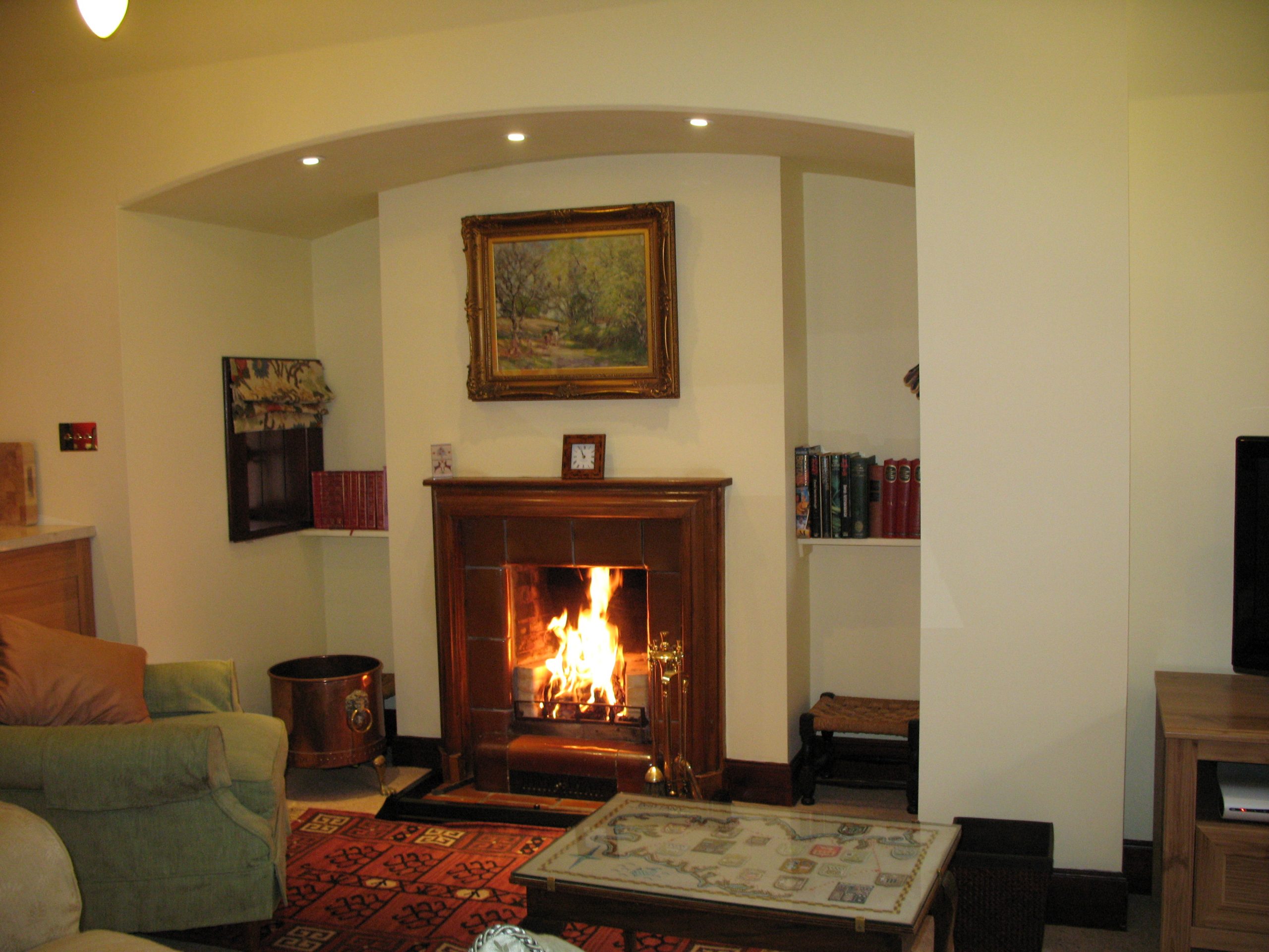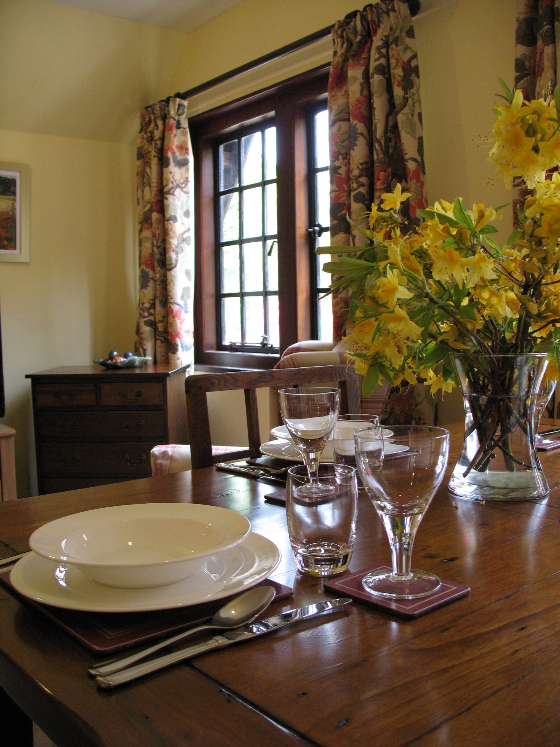 The comfortable Living/Dining/Kitchen area come together to create a delightful space with an open fire. There is a flat screen freeview tv, with radio and cd player, dvd and internet access, chairs and sofa-bed, a reclaimed pine dining table (extends to seat up to 8, if combining with the Granary) a small library of books, games, cards, dvds and cds.